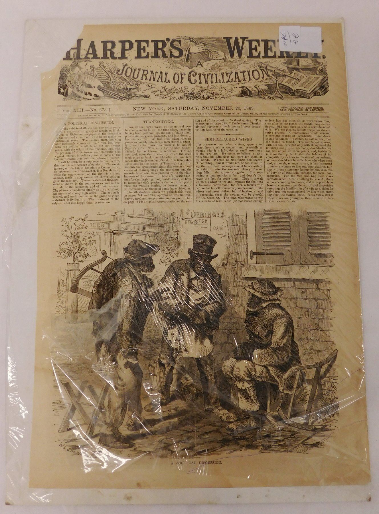 Black Americana Print Collection, c. 19th century to modern. Made of paper and ink, the lot contains pictures, a comic book, sheet music and paper advertisements measuring from 6.5" to 16.5". USA. Approx. 10 pieces total. Condition: Some have damage, see images. Shipping: $20.50 due to length, w/insurance and signature.