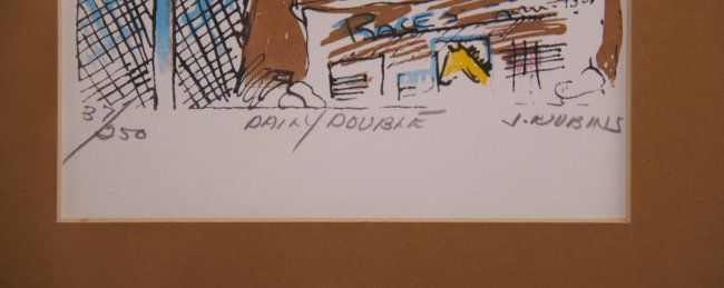 Black Americana lithograph. "Daily Double" signed J. Rubins. #37/250 (Size: See last photo for measurement.) Photos are part of the description representing the condition report. Pangaea Auctions urges Bidder's to view all attached photos.