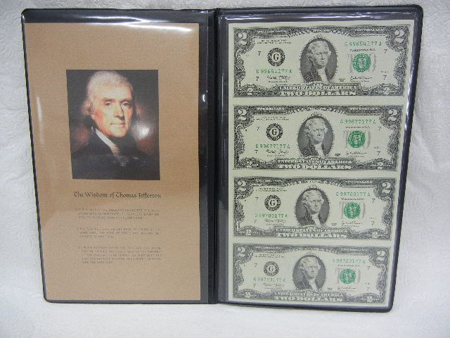 Black Angus Bankers Portfolio w/ Uncut Sheet $2 Bills and Thomas Jefferson Photo, by World Reserve M