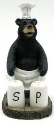 Black Bear Chef Salt & Pepper Set - cute as a button! Resin base with Ceramic shakers. Measure 3"W x 6.5"H x 4"D. Shakers measure 1"W x 1.75"H.