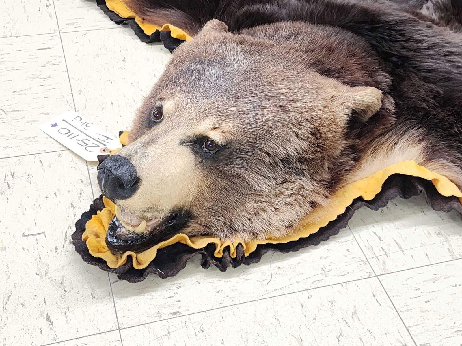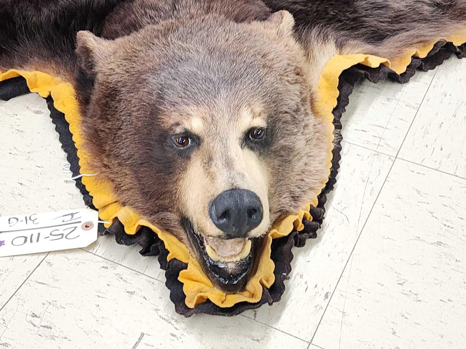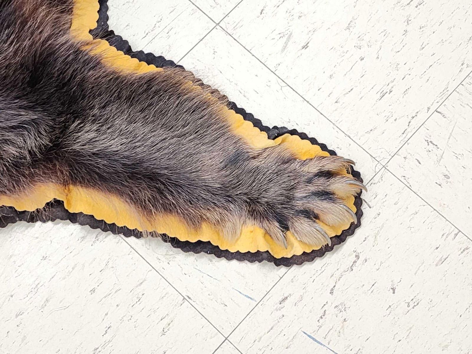 25.110 Thick prime fur missing 1 front claw double felt edges padded backing overall dimensions 68" long x 65" wide