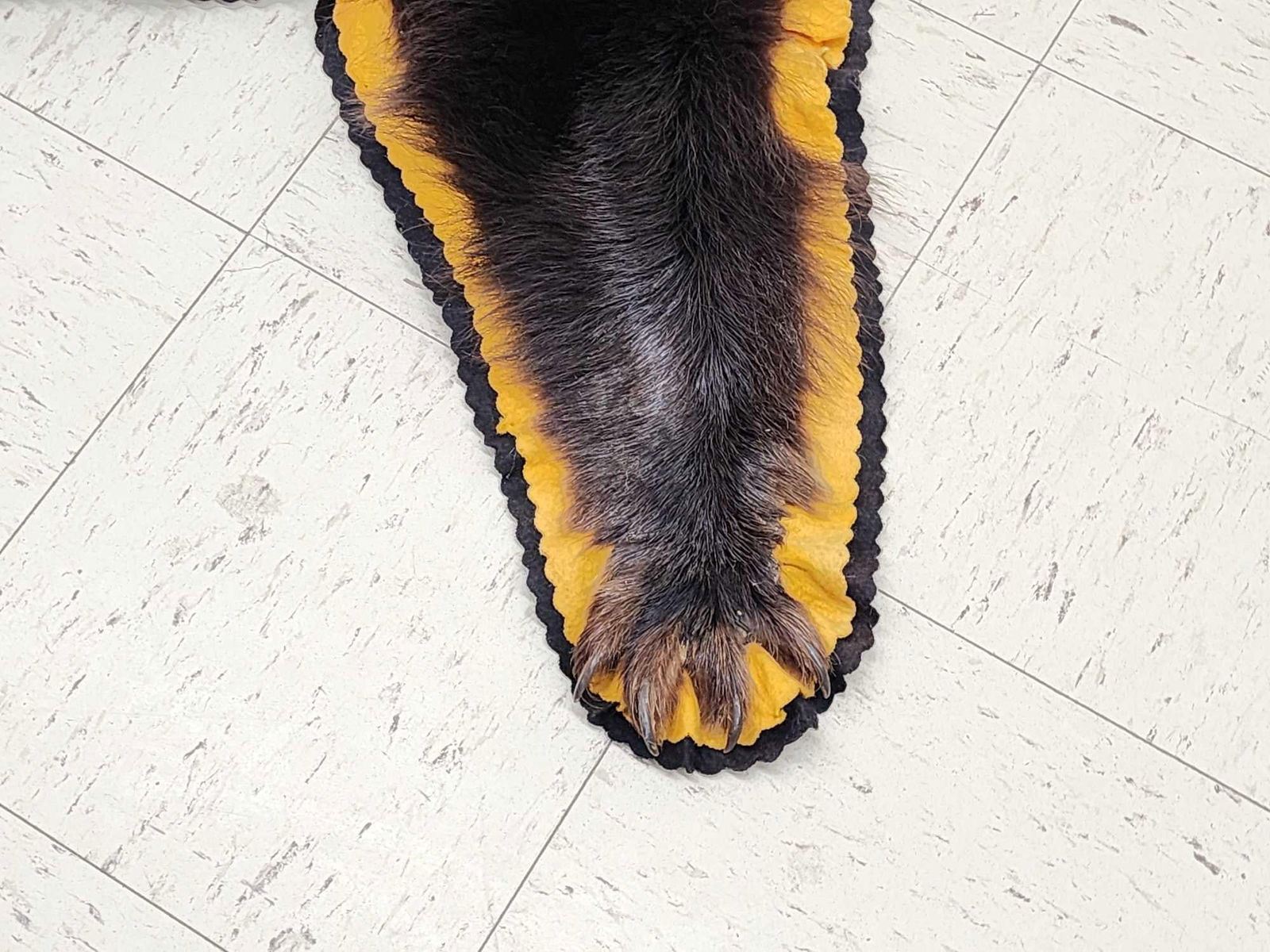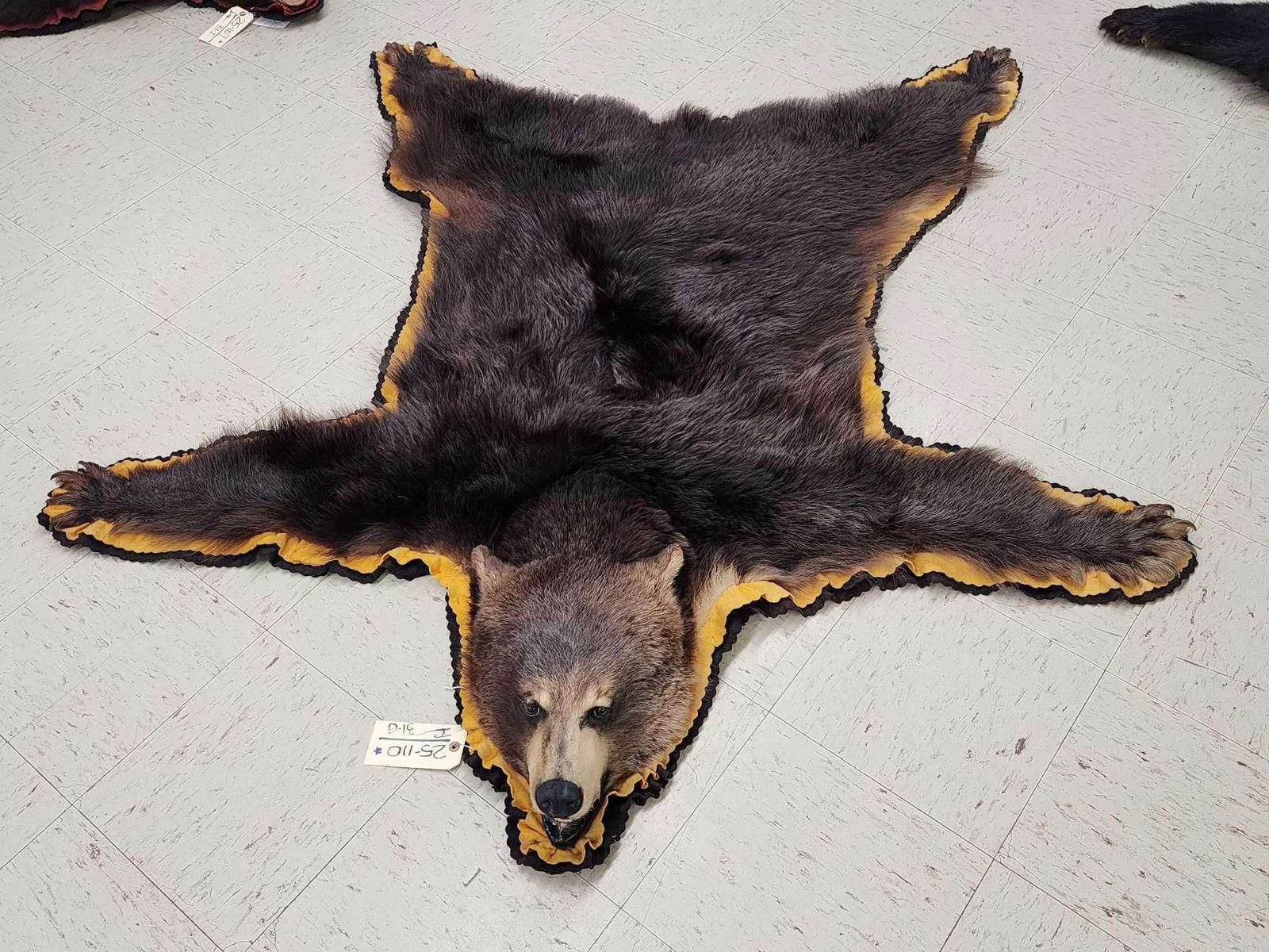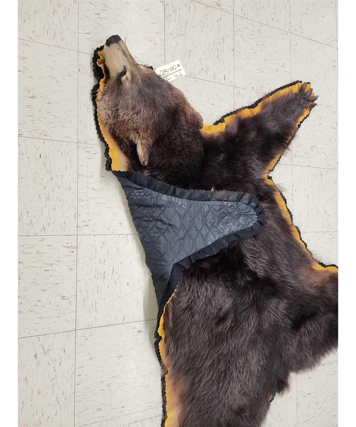 25.110 Thick prime fur missing 1 front claw double felt edges padded backing overall dimensions 68" long x 65" wide