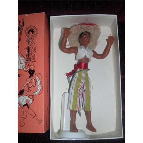 Calypso Male Black Partner Flagg Doll. This guy is all original with his stand and box. His red feather on his hat is shedding! It's hard to find the dark skinned dolls. Doll comes from a smoke free environment. Buyer to pay $10 for shipping, handling, and insurance. Thanks for viewing.