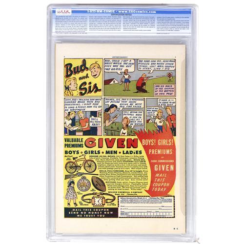 50. Since we cannot examine encapsulated notes or comics, they are sold "as is" without our grading opinion, and may not be returned for any reason. Auctioneer shall not be liable for any patent or latent defect or controversy pertaining to or arising from any encapsulated collectible. In any such instance, purchaser's remedy, if any, shall be solely against the service certifying the collectible.