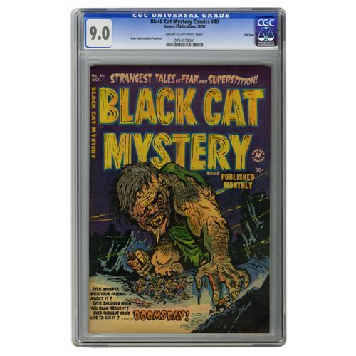 <B>Black Cat Mystery #40 File Copy (Harvey, 1952) CGC VF/NM 9.0 Cream to off-white pages.</B></I> Rudy Palais and Bob Powell interior art. Overstreet 2006 VF/NM 9.0 value = $204; NM- 9.2 value = $270. CGC census 3/06: 2 in 9.0, none higher.
