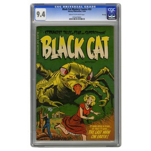 <B>Black Cat Mystery #53 File Copy (Harvey, 1954) CGC NM 9.4 Cream to off-white pages.</B></I> This copy is the nicest we had ever seen of this issue! We recognize the style of Harvey stalwart Al Avison on the cover of this non-Code-approved issue. Overstreet 2006 NM- 9.2 value = $175. CGC census 3/06: 2 in 9.4, none higher.