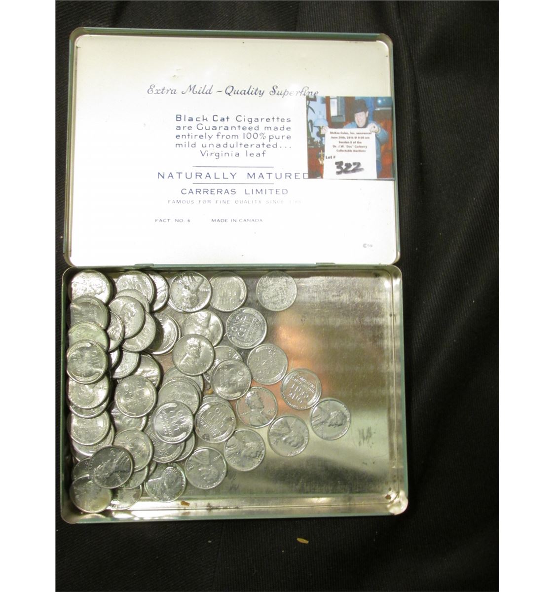 "Black Cat Virginia Cigarettes Mild-Quality Superfine" Metal Tin with a group of old World War II U.S. Steel Cents.