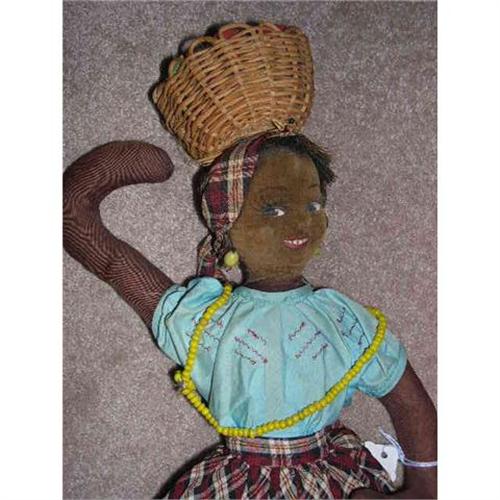 Black Cloth Doll W/ Painted Features. Basket needs to be fastened more securely to head. Doll has some wear. Played with as is. She's from a smoke free environment. Buyer to pay $15 for shipping, insurance and handling. Thanks for viewing.
