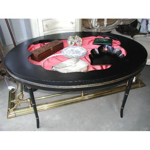 <tr><td>Title:Black Coffee Table Display Table With Gilt</td></tr>