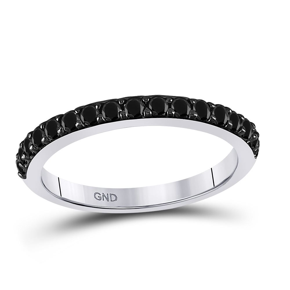 10kt White Gold Womens Round Black Color Enhanced Diamond Band Ring 1/2 Cttw