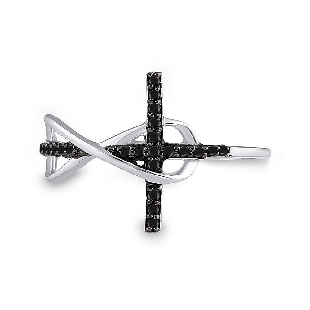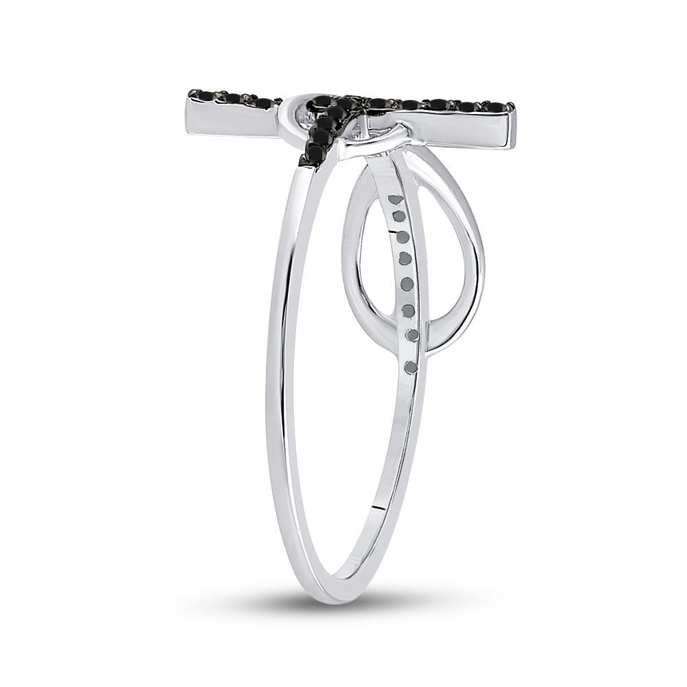 Sterling Silver Womens Round Black Color Enhanced Diamond Cross Infinity Ring 1/10 Cttw