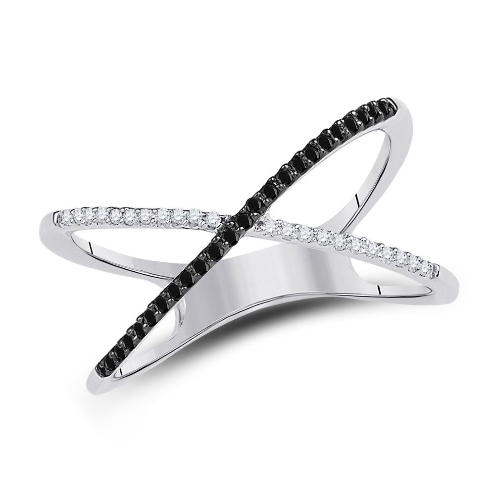 Sterling Silver Womens Black Color Enhanced Diamond Crossover Band Ring Slender 1/6 Cttw