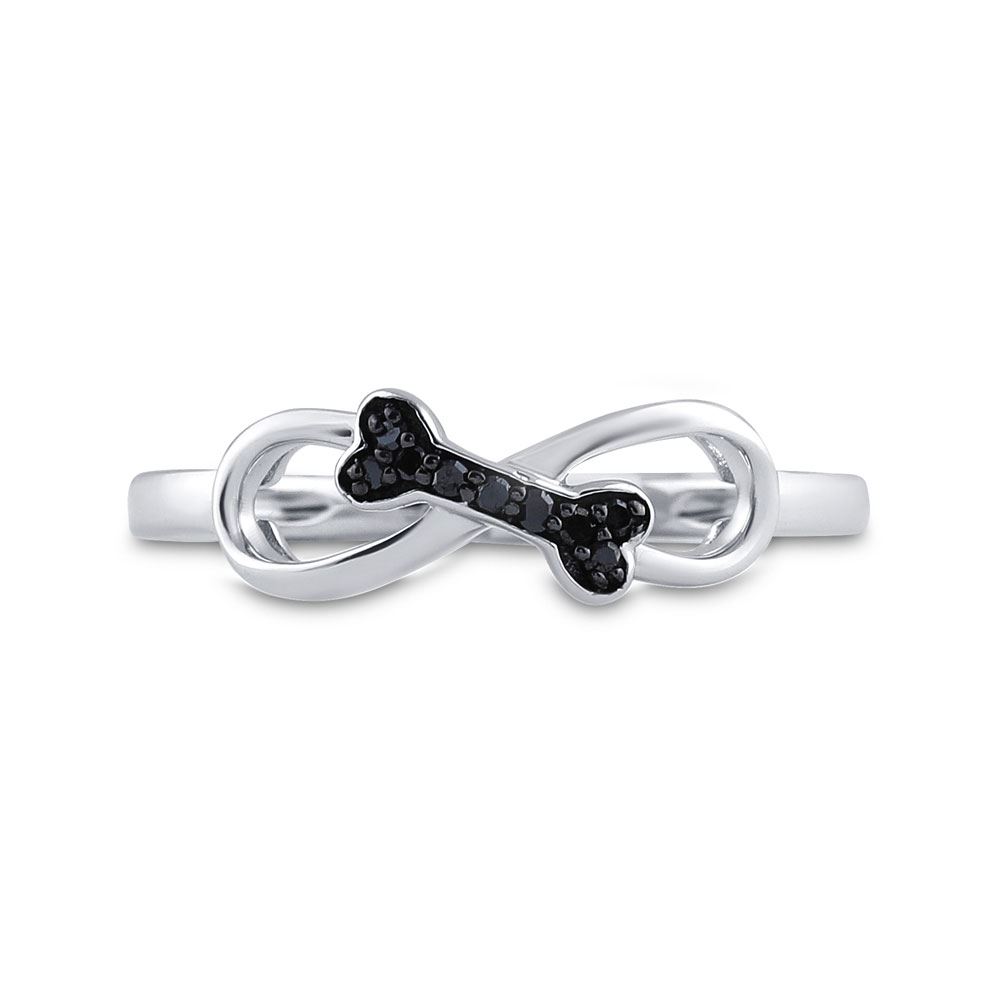 Sterling Silver Womens Round Black Color Enhanced Diamond Dog Bone Infinity Ring 1/20 Cttw
