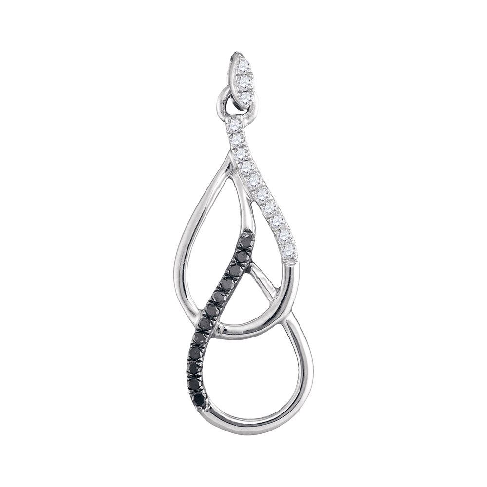 Sterling Silver Womens Round Black Color Enhanced Diamond Double Teardrop Pendant 1/6 Cttw