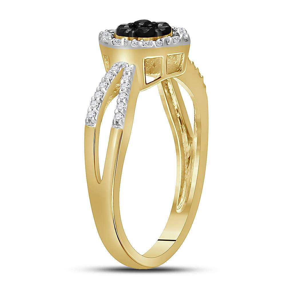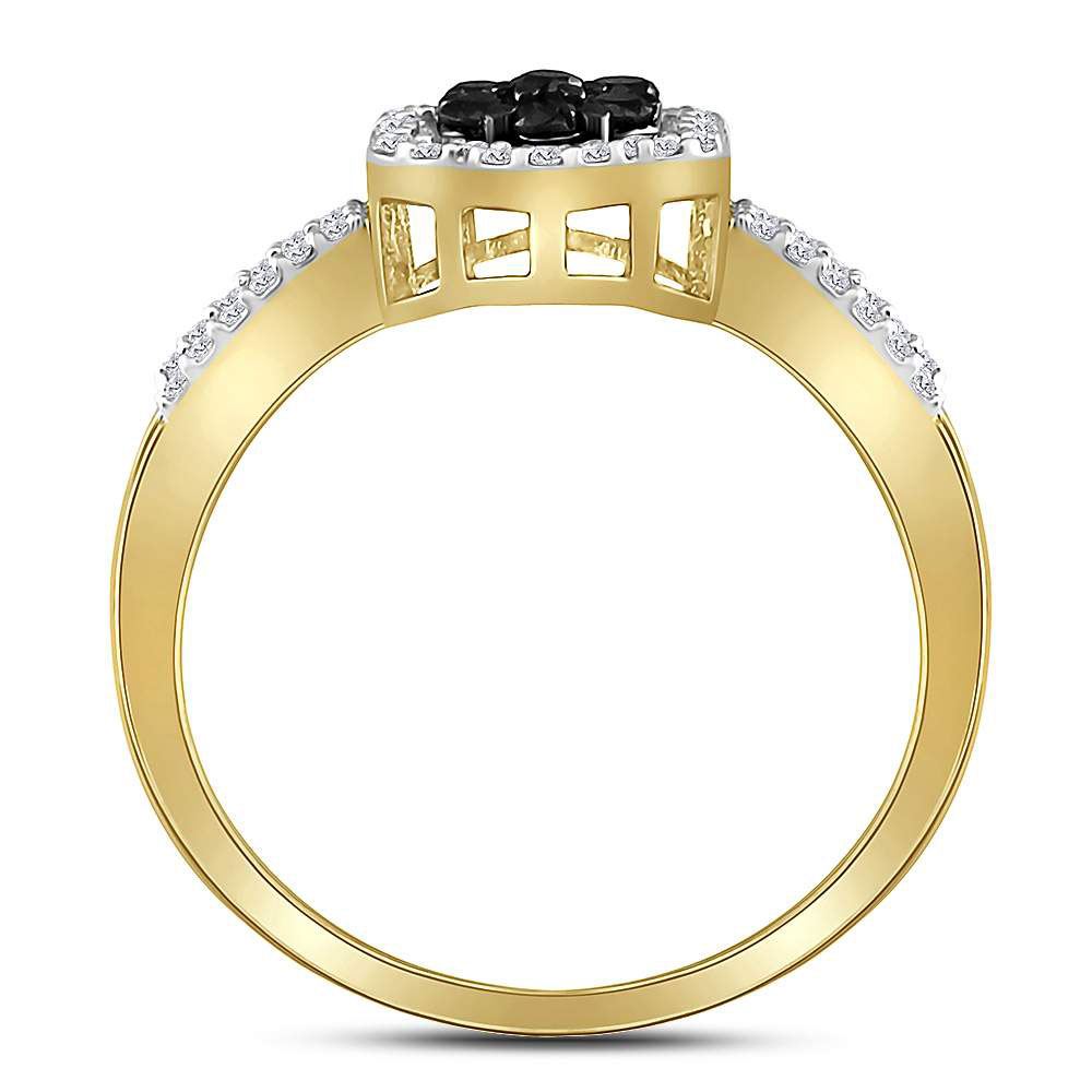 10kt Yellow Gold Womens Round Black Color Enhanced Diamond Flower Cluster Ring 1/3 Cttw