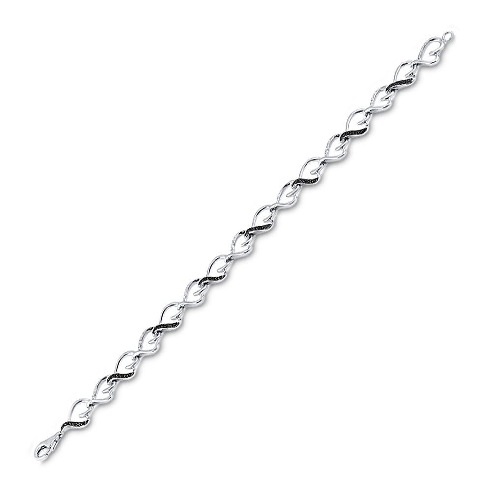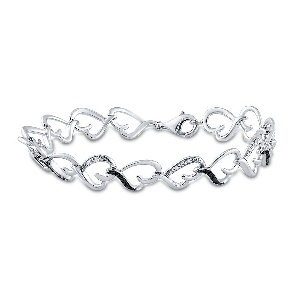 Sterling Silver Womens Round Black Color Enhanced Diamond Heart Bracelet 1/10 Cttw