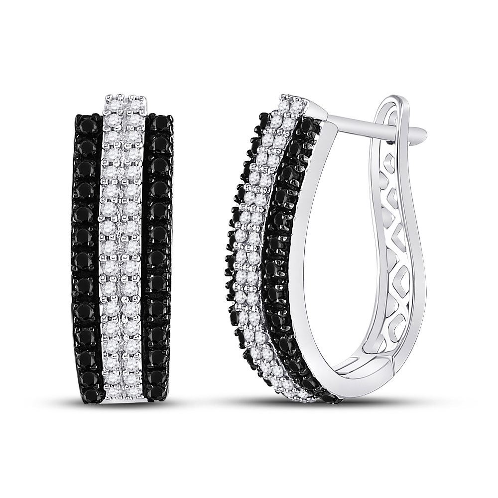 14kt White Gold Womens Round Black Color Enhanced Diamond Hoop Earrings 1 Cttw