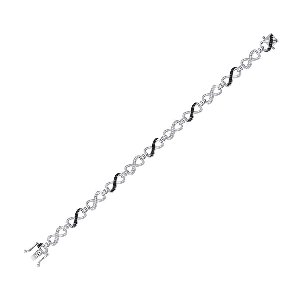 Sterling Silver Womens Round Black Color Enhanced Diamond Infinity Bracelet 1/3 Cttw