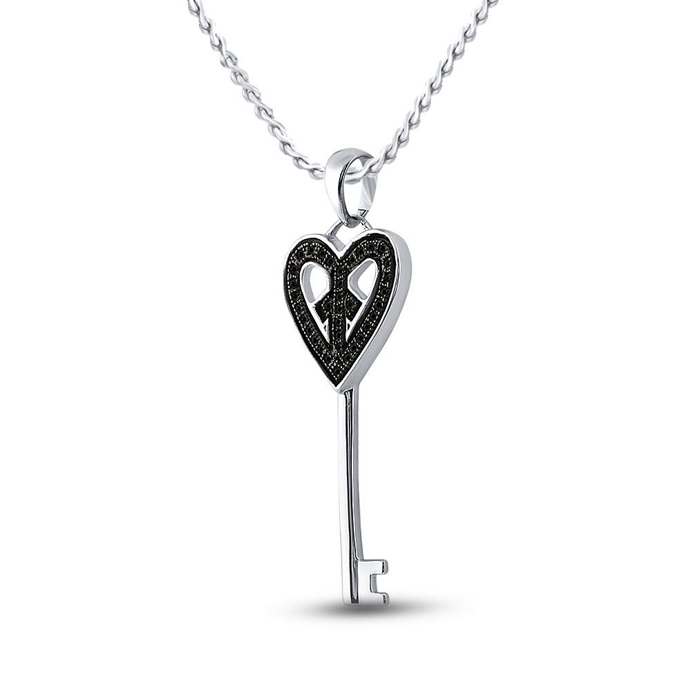 Sterling Silver Womens Round Black Color Enhanced Diamond Key Heart Pendant 1/10 Cttw