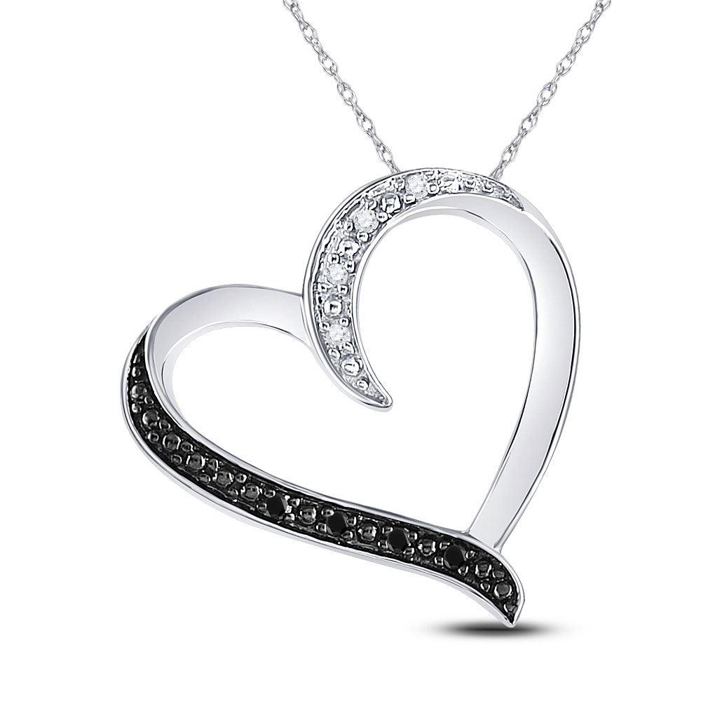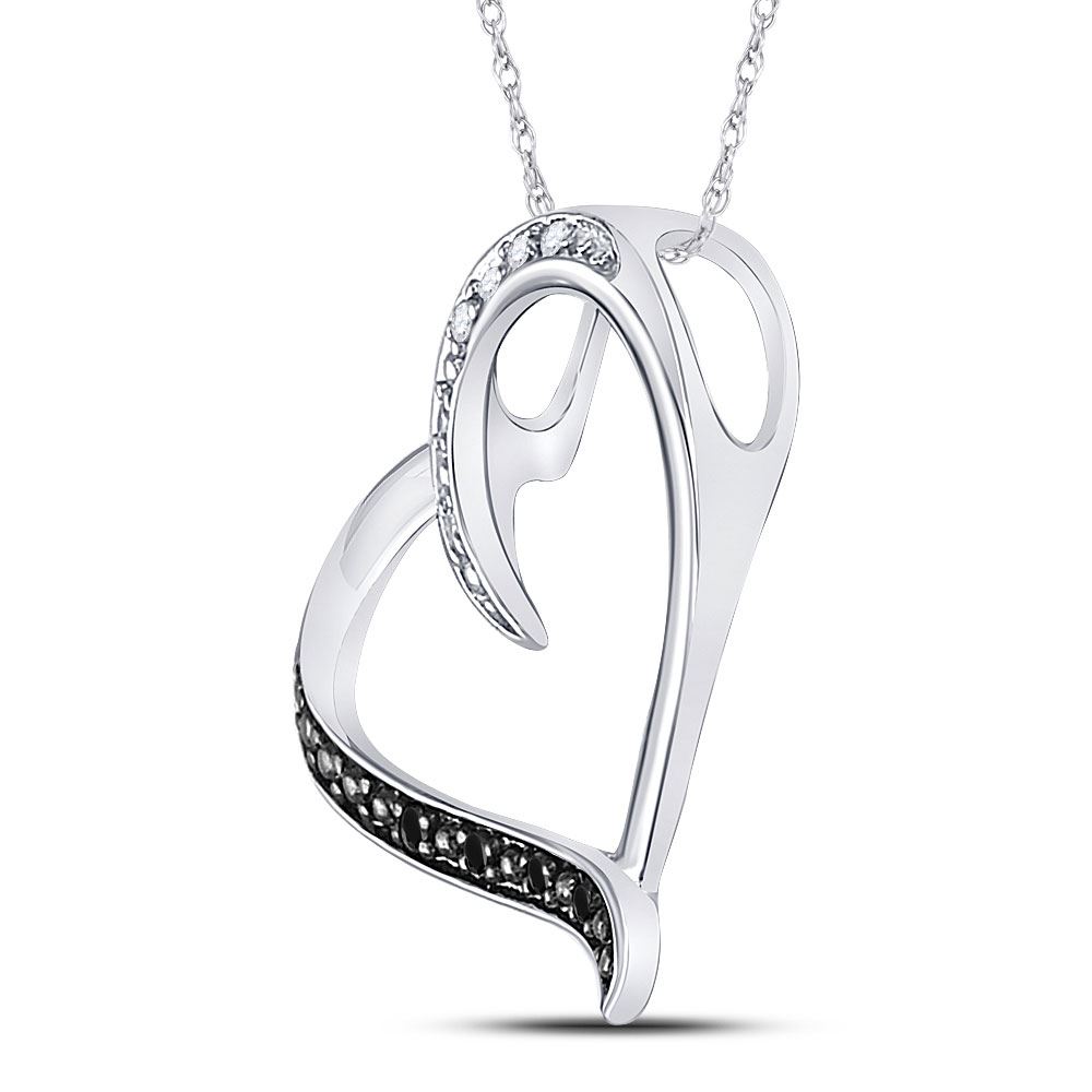 Sterling Silver Womens Round Black Color Enhanced Diamond Simple Heart Pendant 1/20 Cttw