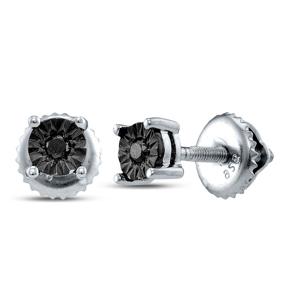 Sterling Silver Womens Round Black Color Enhanced Diamond Solitaire Stud Earrings 1/20 Cttw