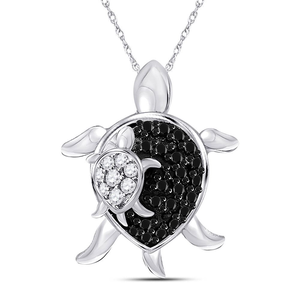 10kt White Gold Womens Round Black Color Enhanced Diamond Turtle Animal Pendant 1/8 Cttw