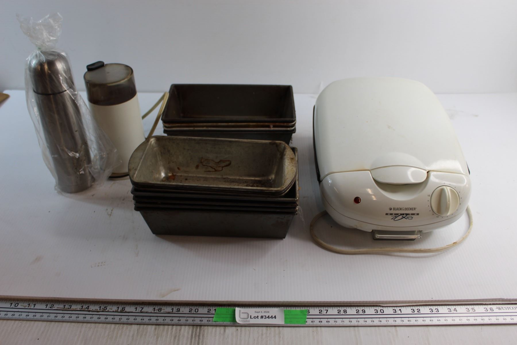 Black & Decker Griddle - Untested, (11) Bread Pans, Thermos and Grinder - Untested
