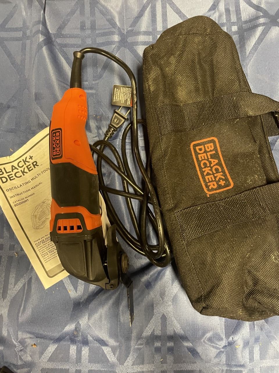 Black & Decker Oscillating Multi Tool with case. The Black & Decker BD200MTB 2.0 AMP Variable Speed Oscillating Multi-Tool has a tool free blade release that makes accessory changes quick and easy and the quick release lever eliminates the need for a hex key. With 13 available accessories, the range of possible applications is virtually unlimited. It has a variable speed dial that has six speed settings (10,000-20,000 OPM) to deliver the precision performance that is right for each job.