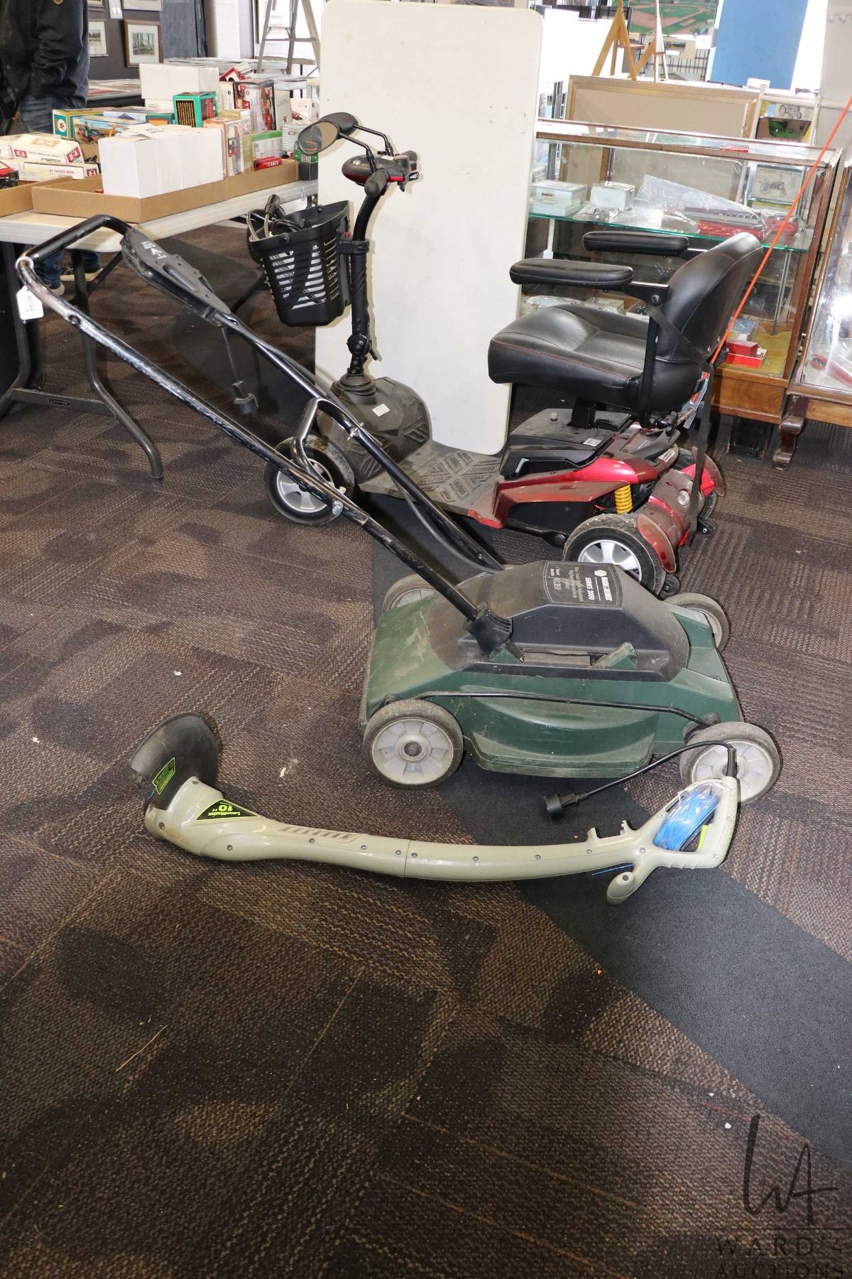 Black & Decker series 2000 electric mower and a Lawnmaster 10" weed whacker, both working at time of cataloguing