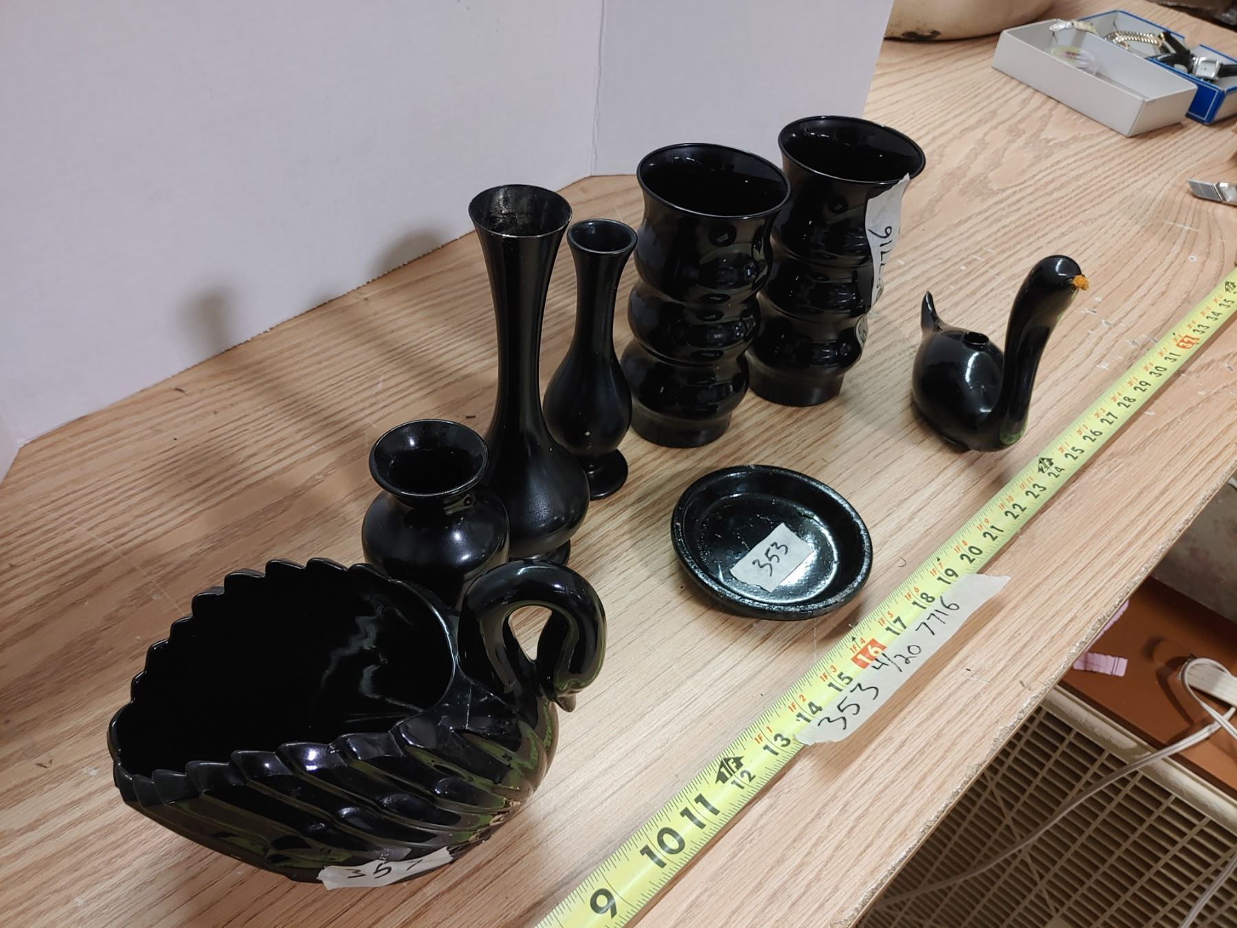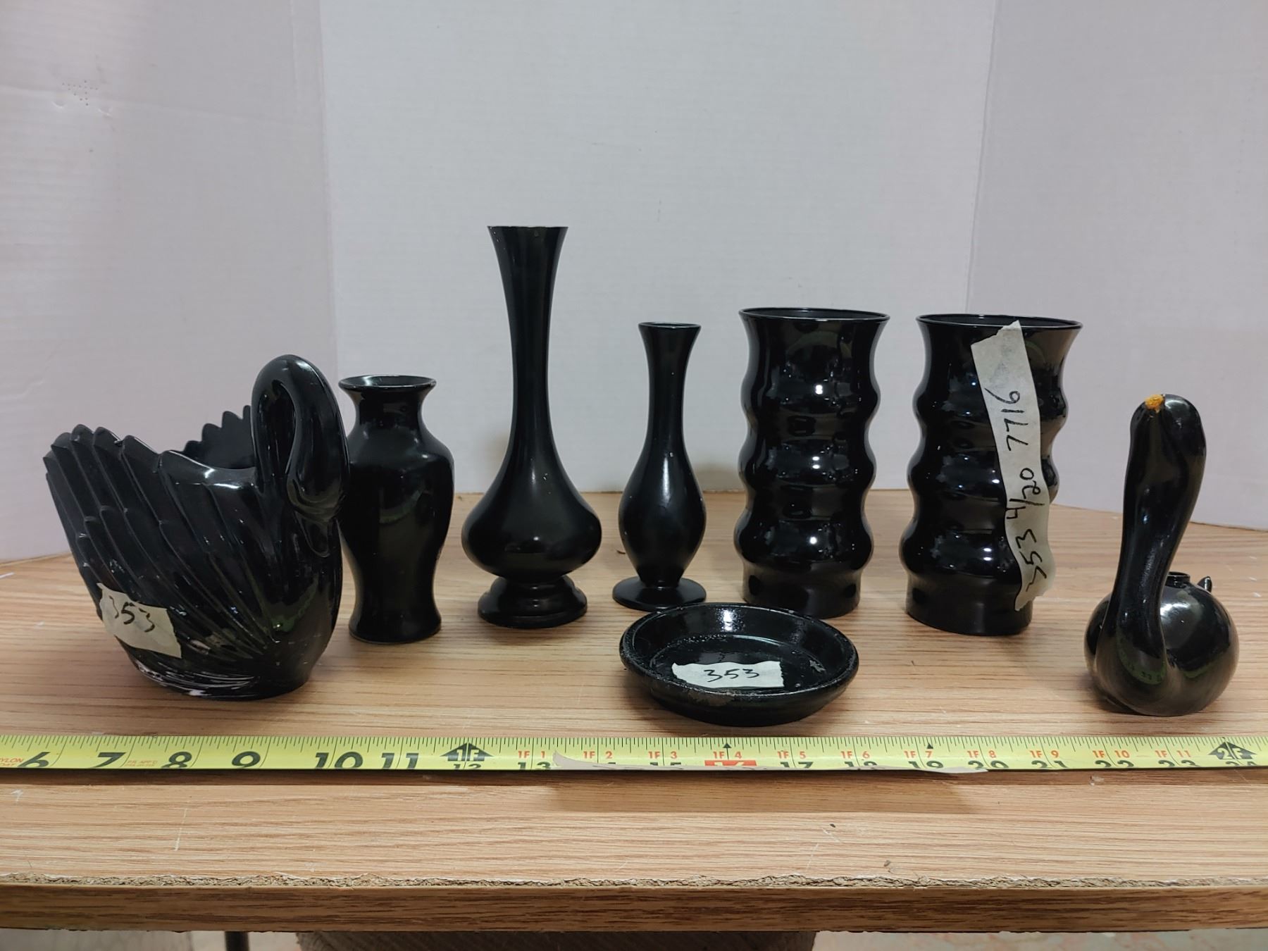 Black Decorative Pieces, Swans, Candle Holders Etc.