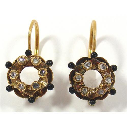 <tr><td>Title:Black Enameled Earrings with Rose Diamonds</td></tr>