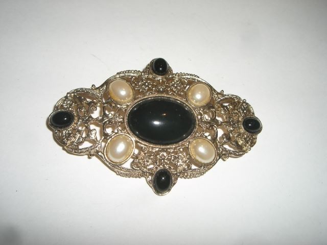 Black & Faux Pearl Gold Colored Pin ***Coin, Currency & All Items Listed in this auction - Grades, Conditions and Values are not Safe Deposit Coins LLC Responsibilty. Grades, Condition and Values are determined by Consigner(s) & Buyers