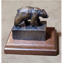 Artist is John Louis Clarke of Glacier Park Montana. Work is entitled "Tiny Bear". Numbered as shown.