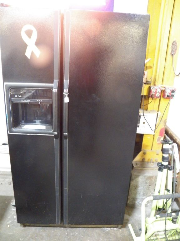 Black GE Side By Side Refrigerator approx 36" x 33" x H 70" works great