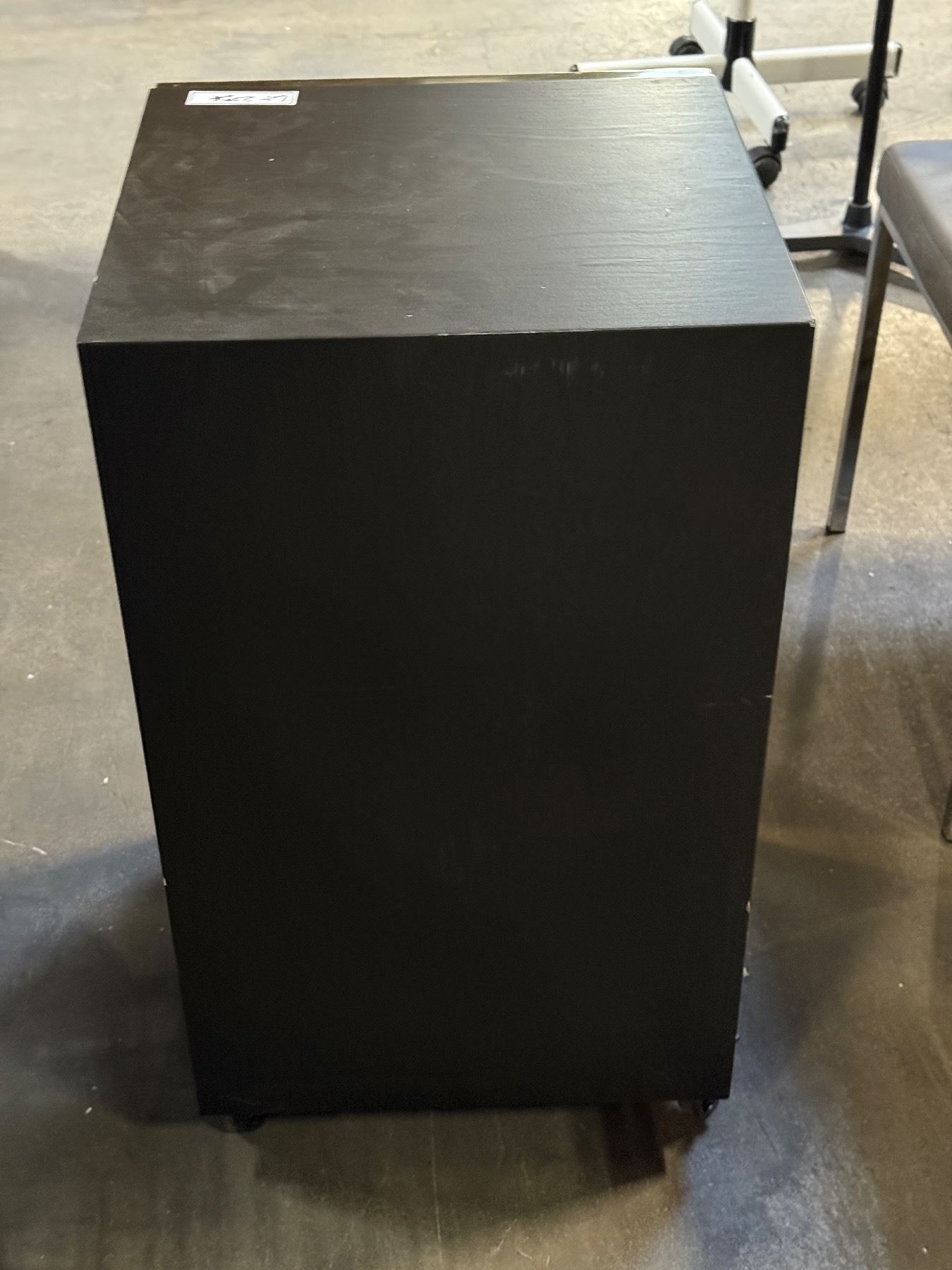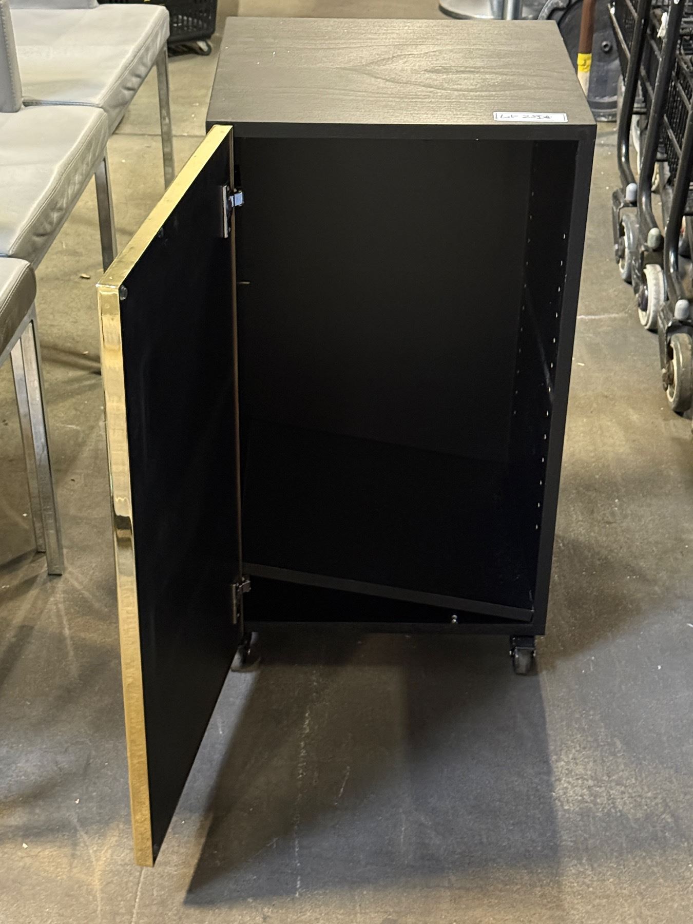 Black & Gold rolling cabinet - approx 16" x 16" x 28 1/2" H