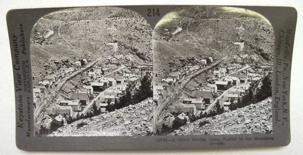 Stereoview says "A silver mining camp nestled in the mountains, Nevada." But it is Black Hawk. Keystone View Company, #214.