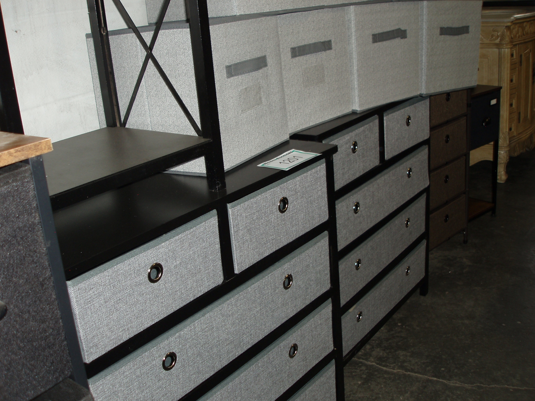 Black Laminate Multi Tiered Dressers with light grey fabric drawers c/w 2 dressers and 1 end table
