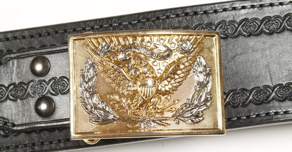 With cartridge pouch. Gold belt buckle with American eagle. Approx 45". In good condition.