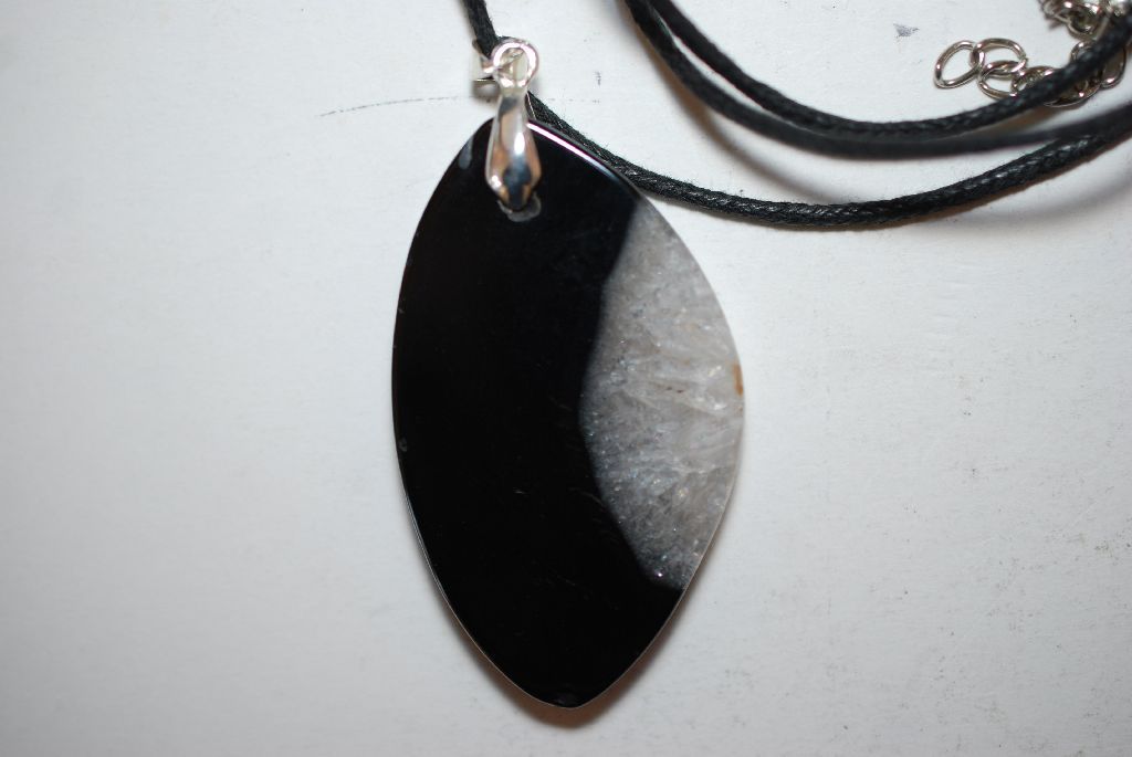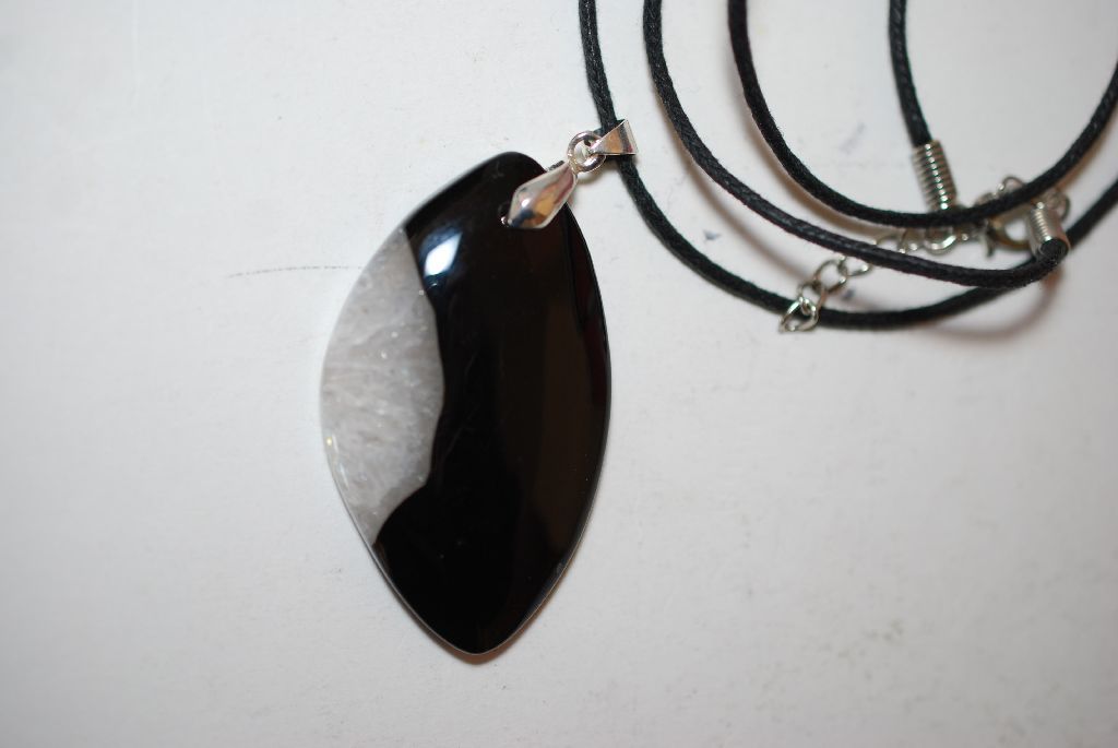 Black Leather Necklace With Dark Multi-Colored Stone Charm; EST. $15-25