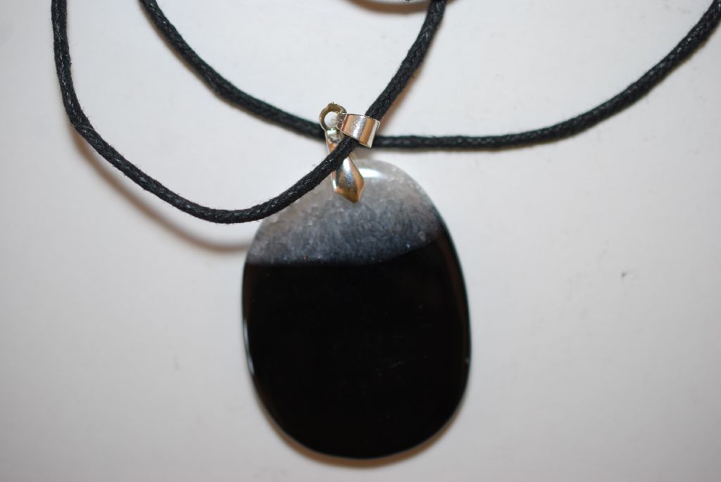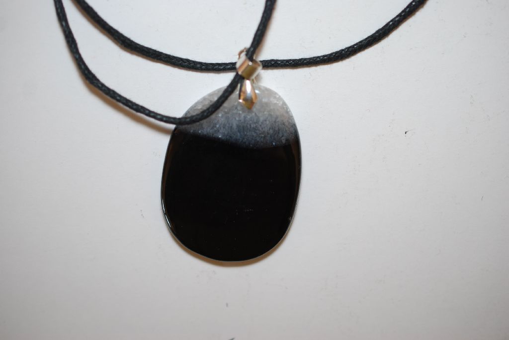 Black Leather Necklace With Multi Colored Stone Charm; EST. $10-20