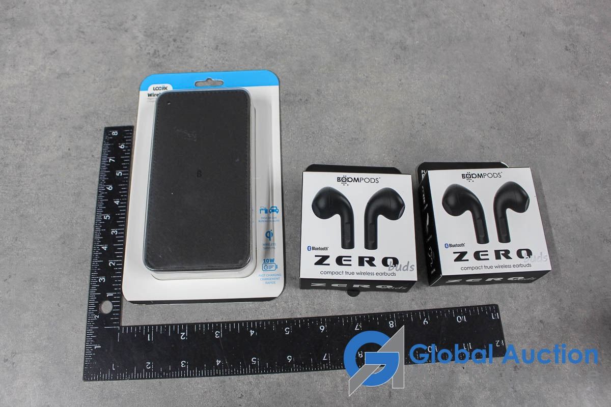 Black Logiix Qi Leather Fast Charger & (2) Boompods Zero Wireless Earbuds