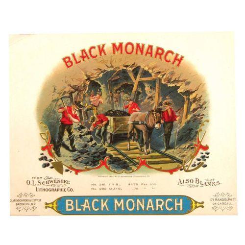 Black Monarch Cigar Box Label. Fabulous Color and Graphics. Mint condition. 7 1/2 X 6 inches.