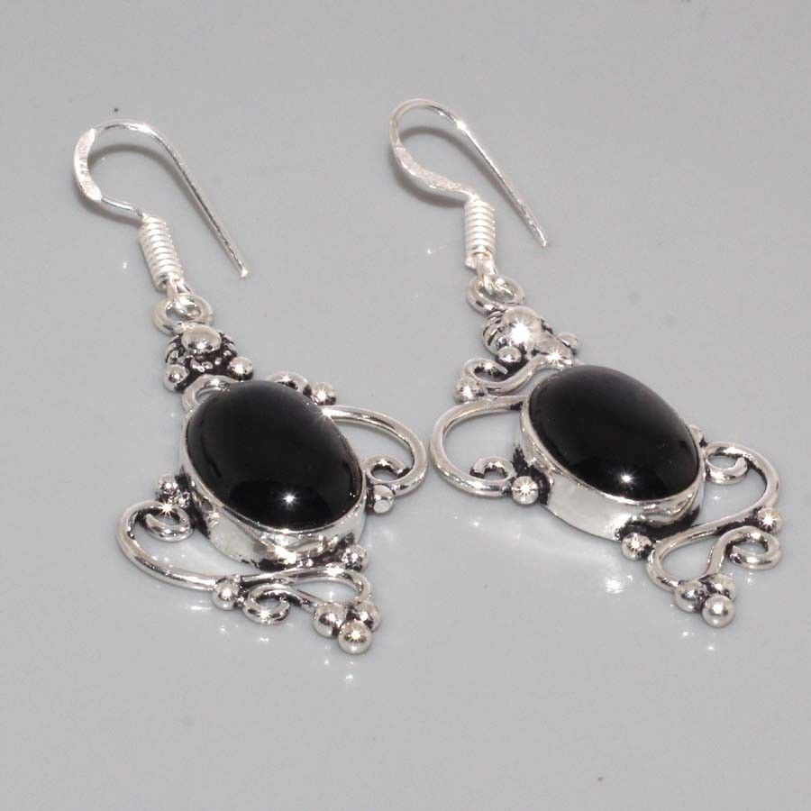 Beautiful black onyx and 925 sterling silver marked earrings.