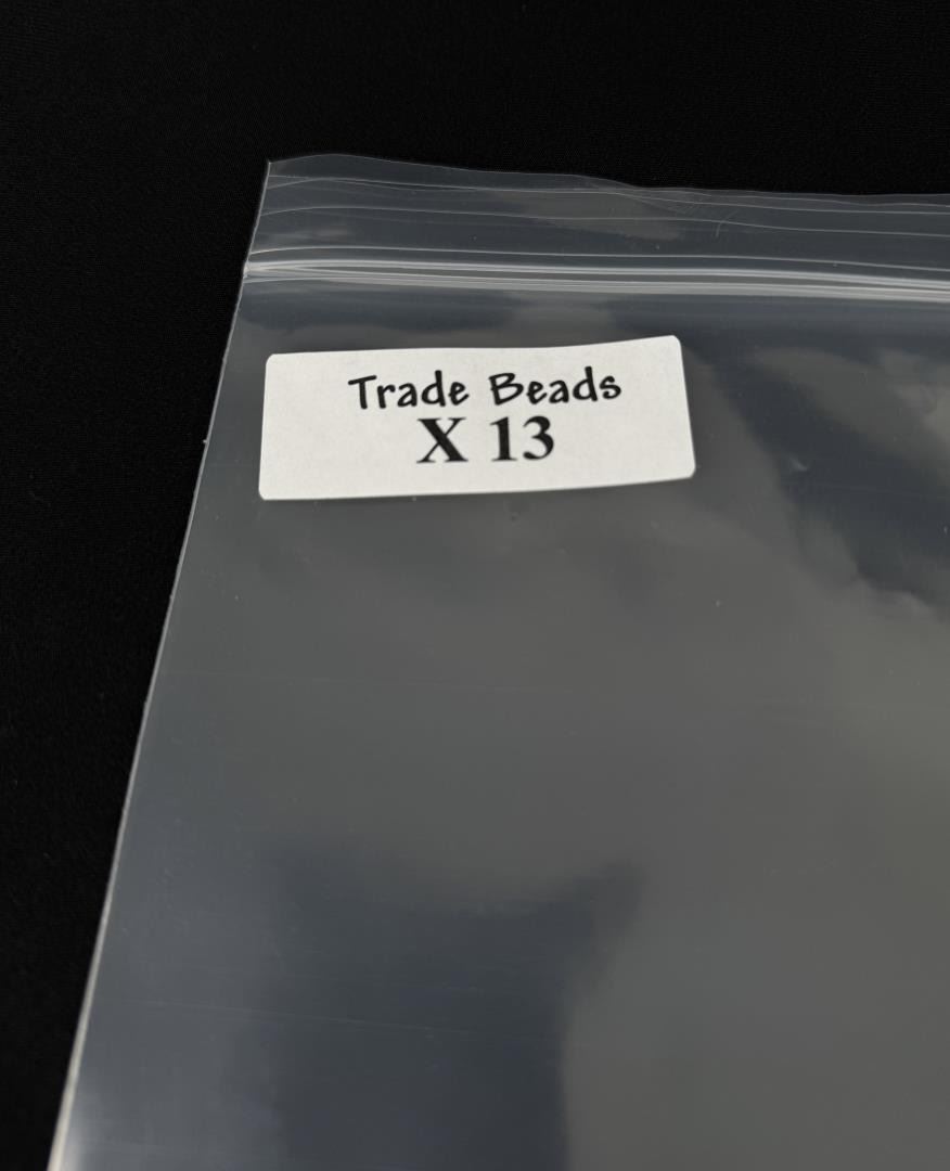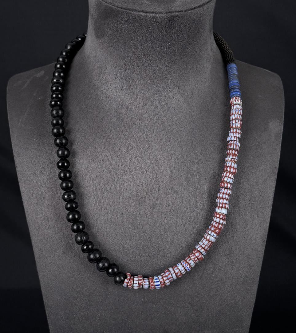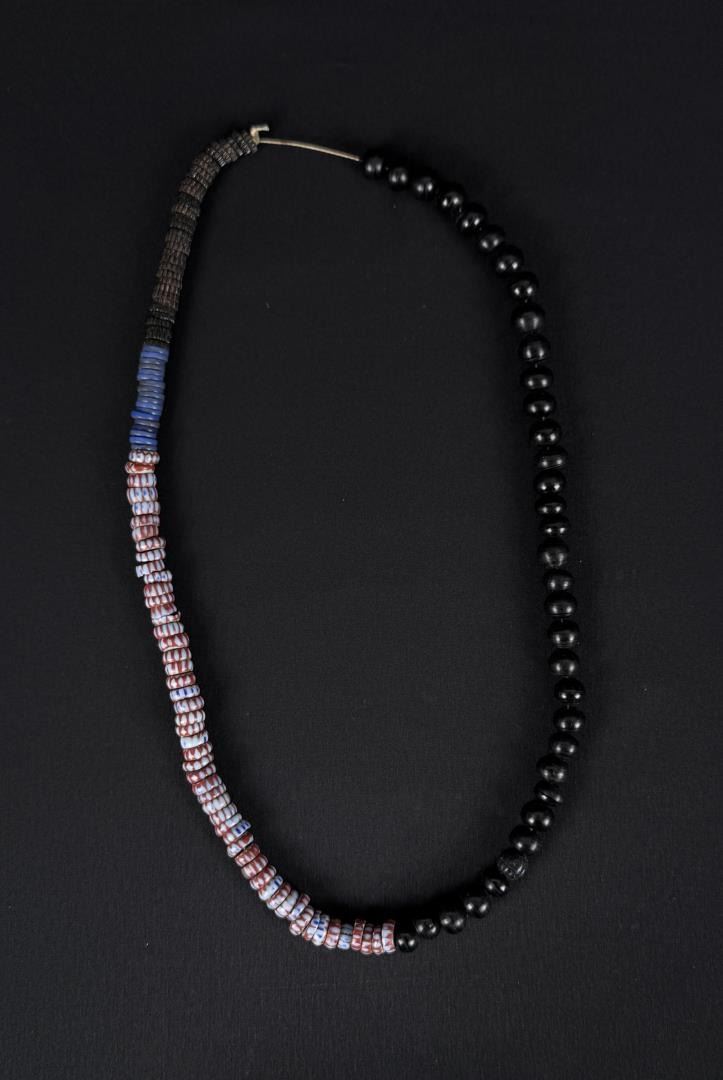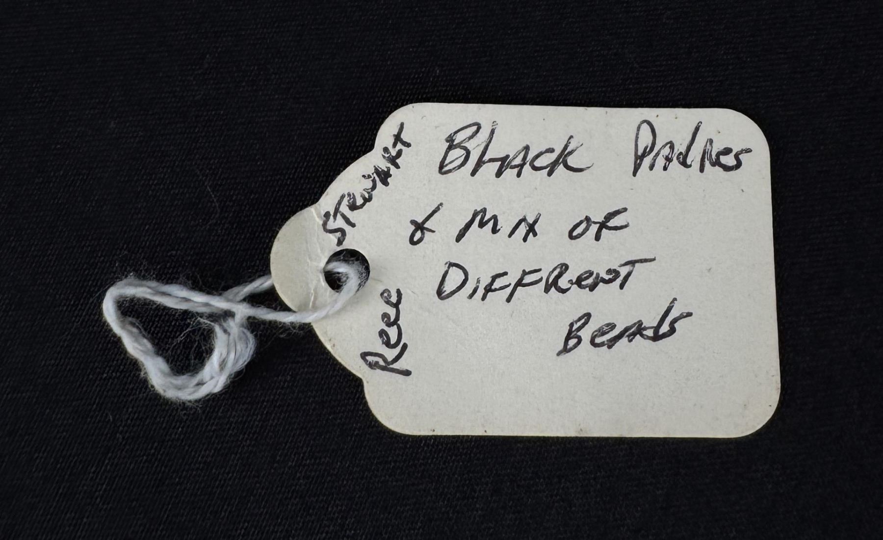 Mix of other glass disc beads in addition to the Black Padres. 12 1/2" Long