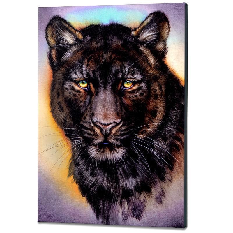 "Black Phase Leopard" is a limited edition giclee on gallery wrapped canvas by Martin Katon, numbered and hand signed by the artist! This piece comes gallery wrapped. Includes Certificate of Authenticity! Measures approx. 16" x 24" (image).