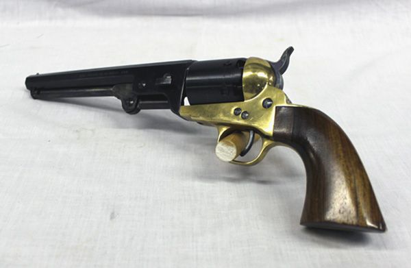 Black Powder Navy Model 36 Caliber Hawes Revolver. This nice piece has a 7.5'' barrel. It was made in Italy for the Hwes Firearm Co. of Los Angeles California.