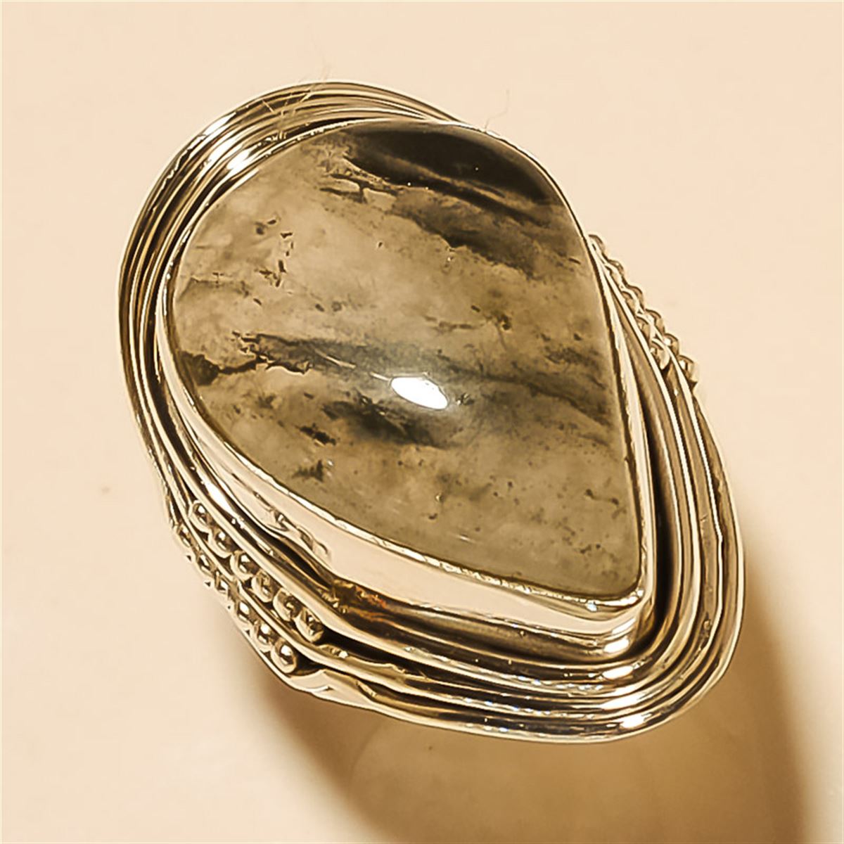 Black quartz RING Solid Sterling Silver Length:1inch Weight:8gram #R-260
