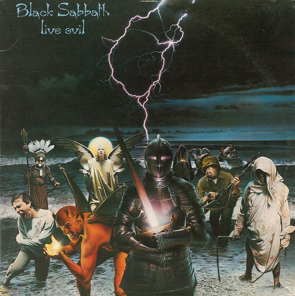 Live Evil album signed and inscribed on the inside gatefold in felt tip and ink by Ronnie James Dio and Vinnie Appice, and signed in felt tip and ink by Tony Lommi and Geezer Butler. In fine condition, with some scattered light edge wear and a PSA/DNA authentication label affixed to bottom of gatefold. The record is included. Dio and Appice would leave the band before this album’s release.