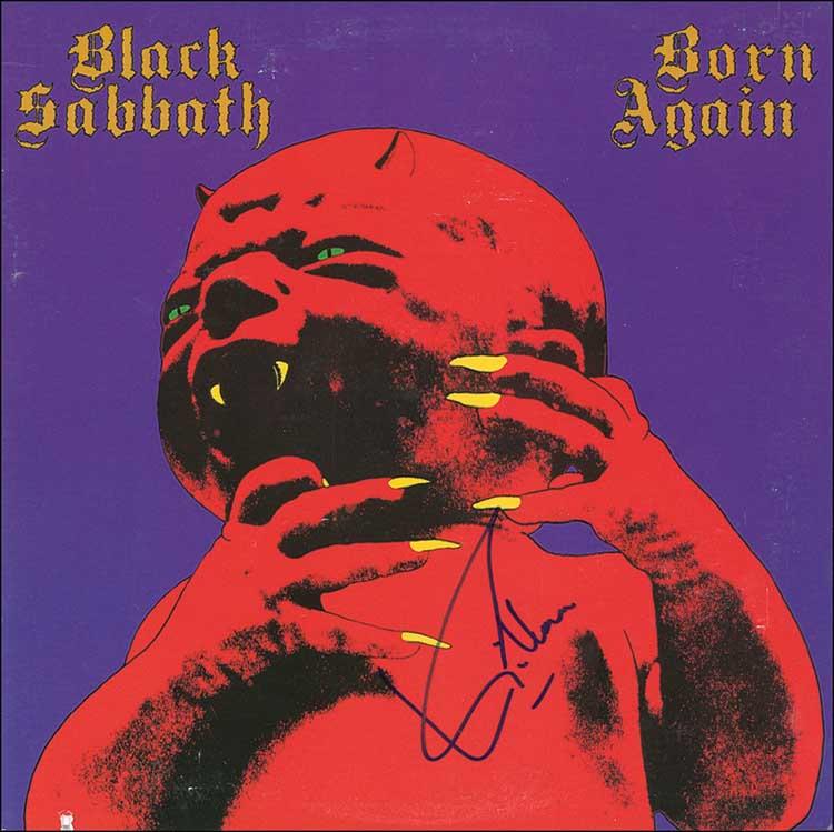 Two albums: self-titled Black Sabbath album, signed on the front cover in blue felt tip by Ozzy Osbourne; and Born Again, signed on the front cover in felt tip by Ian Gillan. The records are included. In fine condition, with a discount cut to Born Again, and some scattered light wear. Pre-certified Roger Epperson/REAL and RRAuction COA.