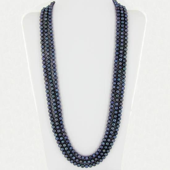 Excellent black saltwater pearls; uniformly sized (6.5mm); 330 count; 75" (25" 3 strands);